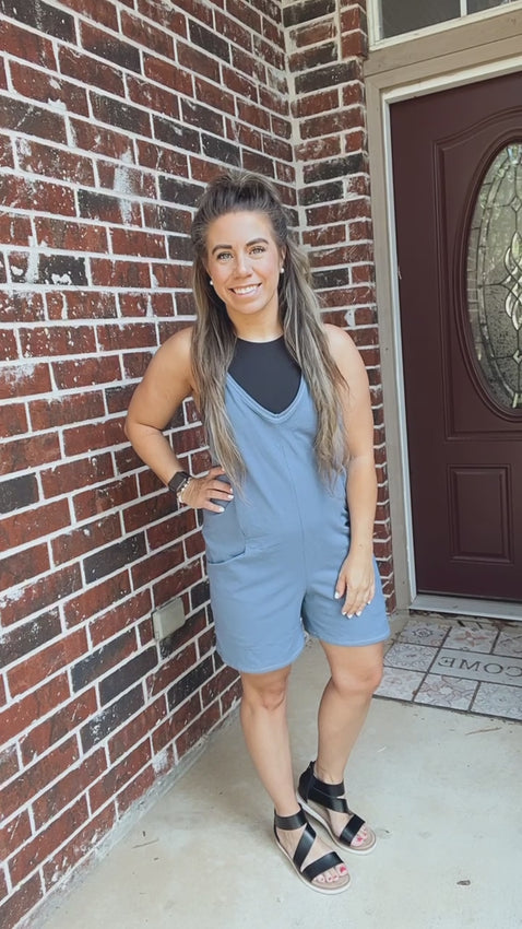 Soft and comfortable slouchy romper with POCKETS. Racerback style, dropped armholes. (Check Sizing Chart)